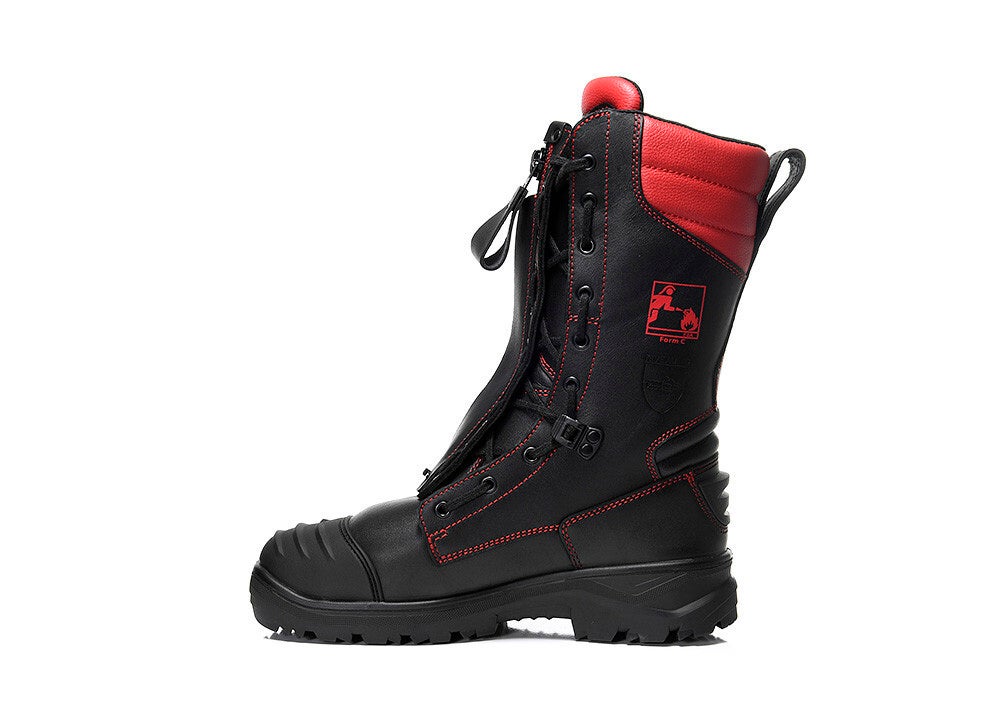- Kombination: Schnürung und Reißverschluss, Nähte aus hitzebeständigem Nomex® Garn, Schnittschutzstiefel – Schutz gegen Schnitte von handgeführten Kettensägen, Schutzniveau 2 (24m/sek), Weiches Knöchelpolster, Flexzonen