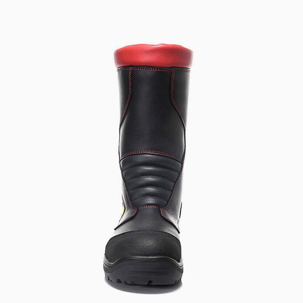 Egal bei welchem Einsatz – mit dem Feuerwehrstiefel CLAY F2A von Elten braucht man sich keine Sorgen machen. Er behauptet sich durch sein feuerresistentes Rindleder, dessen Nähte aus hitzebeständigem Nomex® Garn bestehen. Der Schlupfstiefel mit der besonders rutschhemmenden, grobstolligen, SRC zertifizierten GUMMI/PU Sohle hält enormer Hitze 40 Minuten lang bei 250 Grad Celsius (HI3) stand. Zudem verfügt er über einen abriebfesten Spitzenschutz. Ebenso zur Standardausstattung gehören die Stahlkappe sowie eine durchtritthemmende Zwischensohle aus Stahl. Die Sohle der fünf neuen Modelle der Fire-Reihe ist auf einem neuen Leisten entwickelt worden – für eine komfortable und ergonomische Passform. Dadurch kann sich der Träger auf viel Platz im Vorfußbereich freuen. Das atmungsaktive Textilfutter inklusive Knöchelpolster und komfortablen Flexzonen machen das Tragegefühl des Schuhs einzigartig. Für bessere Sichtbarkeit ist an den Seiten Reflexmaterial angebracht. Dieser Schlupfstiefel der Fire-Serie ist im Größengang 38 bis 50 erhältlich.